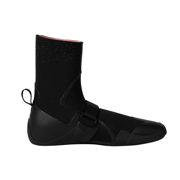 The Roam Boots 5mm Round Toe are built for cold-water sessions where warmth and reliability matter most. Inside, they feature DryWeave lining with recycled silver woven in, creating a quick-dry, antimicrobial layer that keeps them fresh between uses. A round-toe design, Hex-grip Lite sole, and reinforced heel deliver solid traction and support, while a Velcro strap secures the fit and a silicone ankle print locks your wetsuit in place.